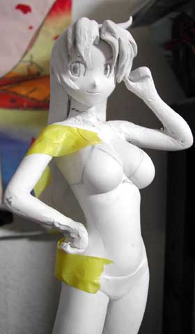 全体的に表面を整えつつ前髪なぞを盛る。水着はOPの白水着に。 ボン太君のバックプリントをデカールでつくっておまけに入れようかな。 まぁ版権下りるか分からんけど(笑)