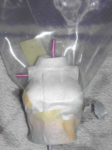 おおまかな形に油粘土を持ってその上にポリパテ〜。アラシたん、ようやくぱんつ一丁から脱出(笑)