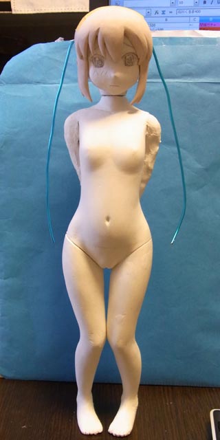 暫定ポーズ。芯の段階から頭がふたまわり位大きくなってるので首から下が小さいです。
