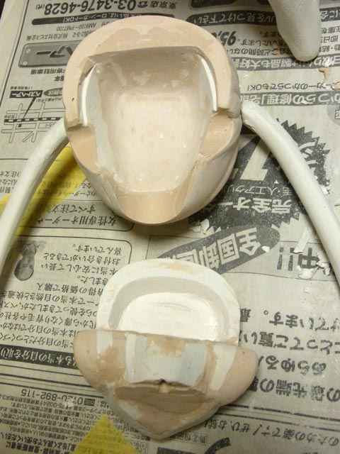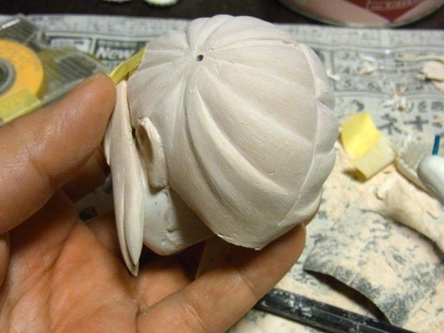 後頭部も大分削りました。最初の方でパテ盛り過ぎでしたね(^^;