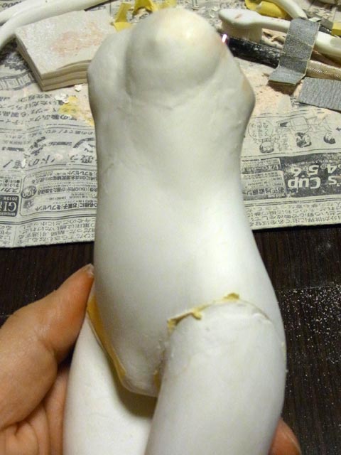 右脚を分割しました。んで内側を盛ったり削ったり。
