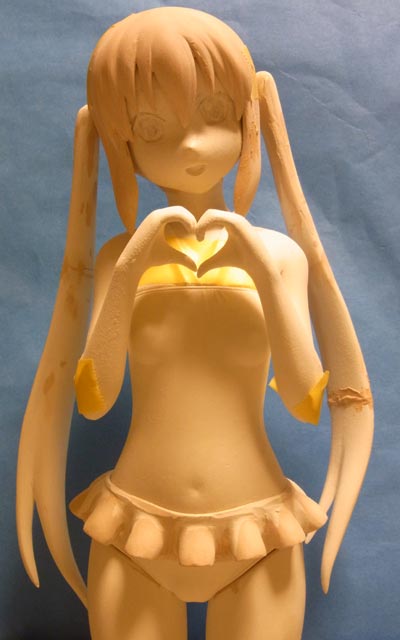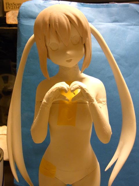 おさげは大体形になりました。腕を一旦切って内側とかを整形します。