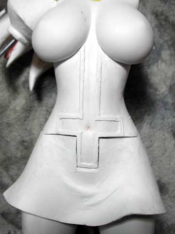 スカート制作中〜。寄せ型使って胴体パーツと一体といきたいところですが、あほみたいに