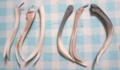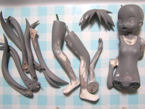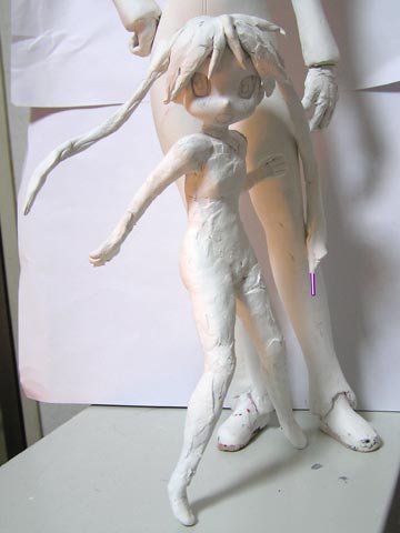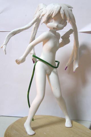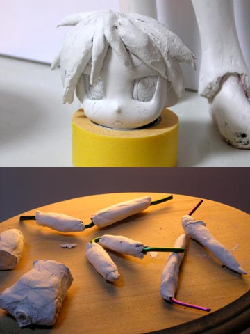 胴体はポーズ検討できるように関節毎に芯を分けて乾燥中。チョーテキトー。 先にアルミ線で棒人間的なものを作ってポーズ検討した後で肉付けしたらいいようなものですが、 胴体から手足を引っこ抜ける方が後でポーズ変更(or調整)する時に便利なのです。