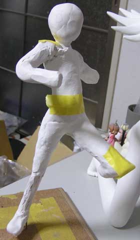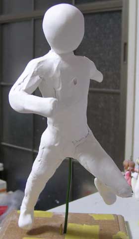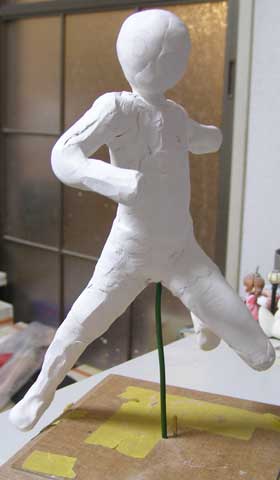 上体のひねりをちょい元に戻しました。ポーズはもういいかなという感じなので各部の作り込みを始めます。