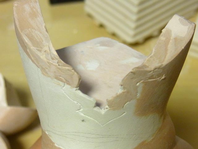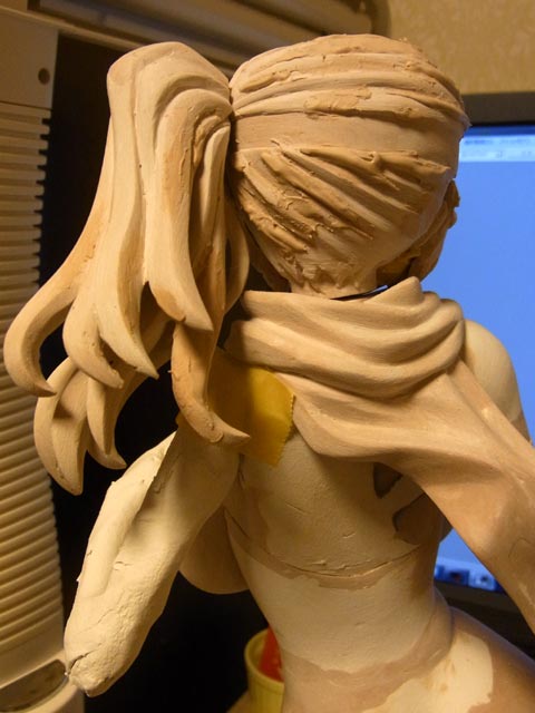 おさげは大まかな形が出来ました。細かい凹凸は後回しにして後頭部に着手。