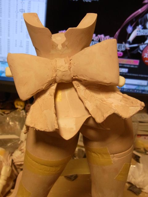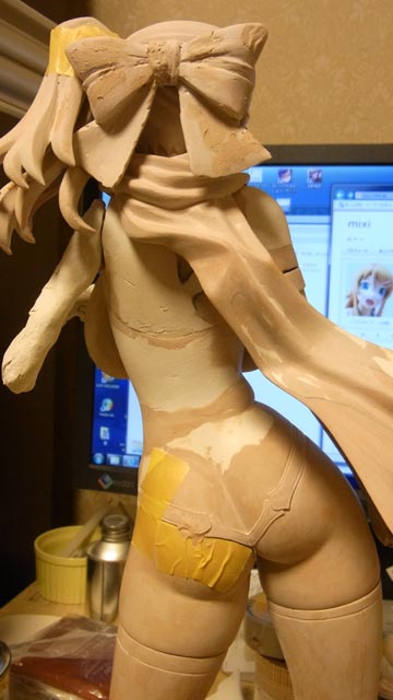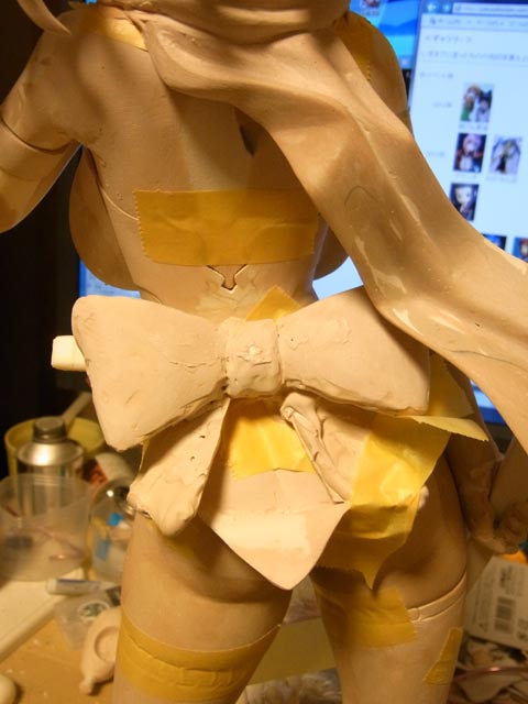 後頭部が大体できたのでリボンを作ってます。あと刀が折れてたので作り直し。ばんつの紐も同時進行で。