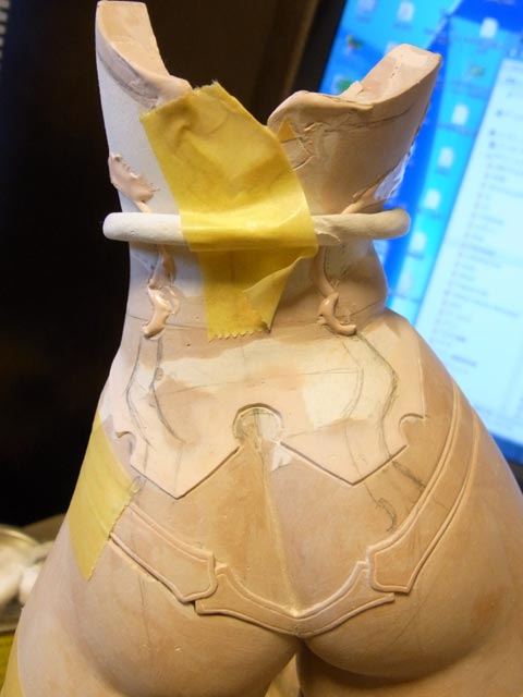 乳は内側を少し増量して収束。マフラー進めつつお腹にパテを盛りまくったんですが、