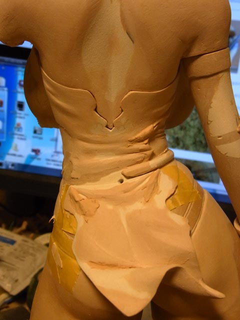 腰の辺りにインチキな皺を作り中。何度もやり直すのでなかなか終りません。