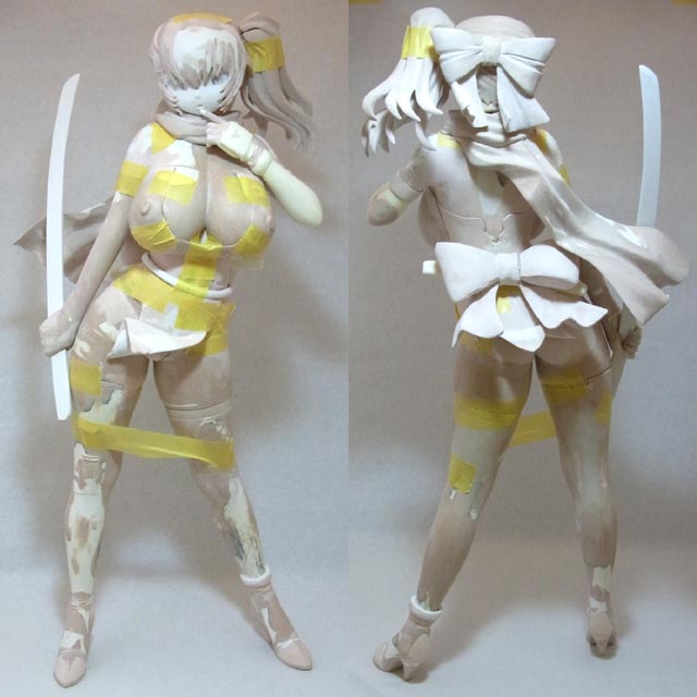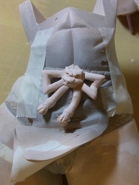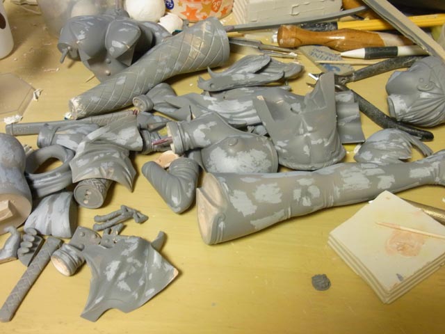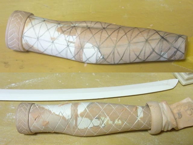 昨日と同じ要領で右腕の網をスジ彫り。あと刀に刃を付けました。