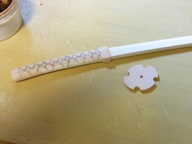 刀の柄と鍔を作り中。割と面倒臭い感じ(笑)