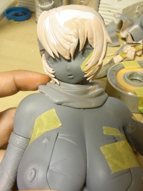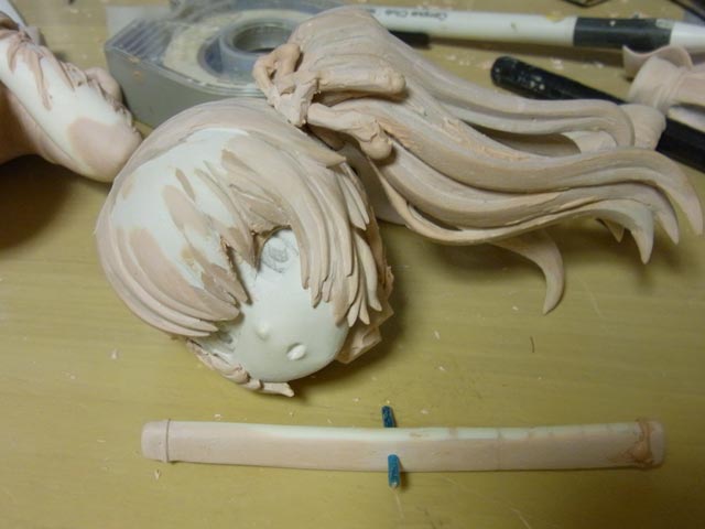 腕の直し終了。もみあげもできました。
