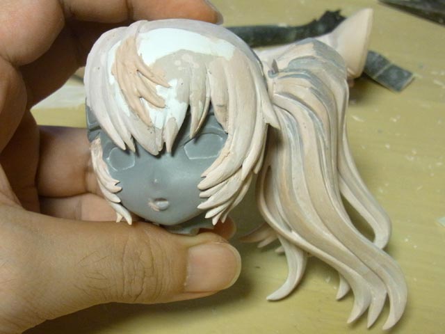 口の直し&首の角度を調整しました。もみあげ&前髪がスロー進行です。