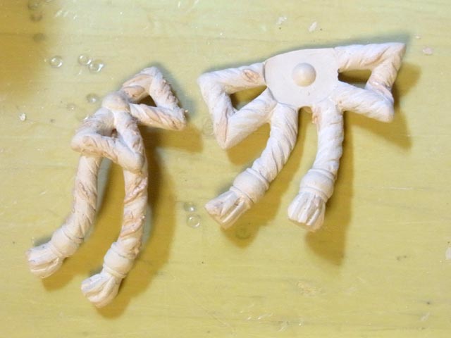 分割するとそれぞれのパーツを一番都合のよい角度で粘土に埋める事ができるのがメリットです。