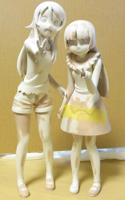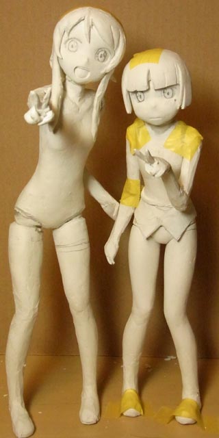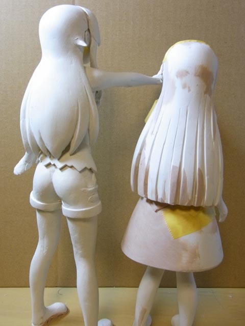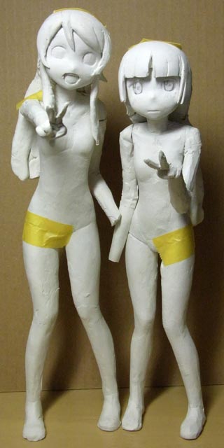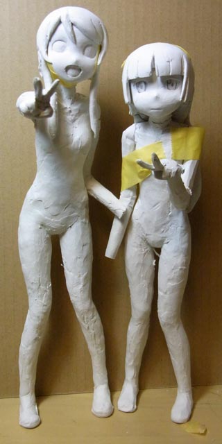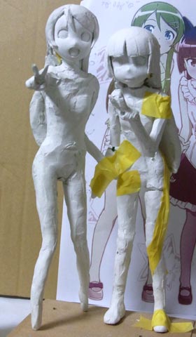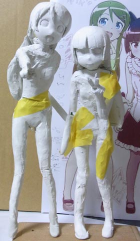 桐乃の左手に取り掛かりました。ふたりの立ち位置をテープで決めてから肘や手首の角度を固定しました。