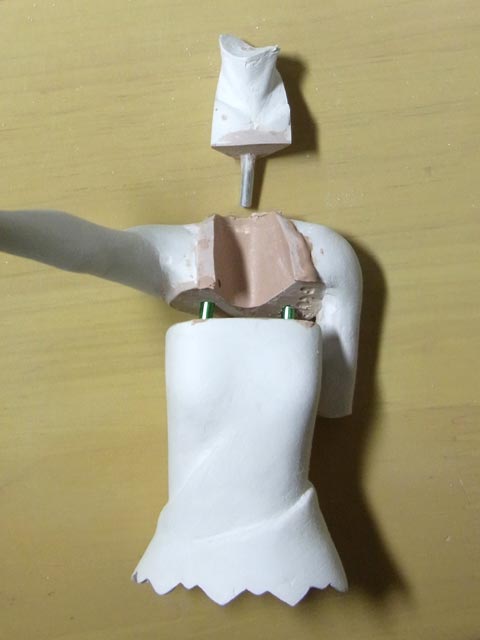 両腕も1パーツにしたい所ですが抜くのが難しくなるので背中で左右に割ります。