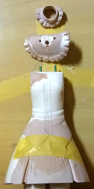 首の紐はリボンの部分を別パーツにします。小さいので作るのが面倒ですわ。