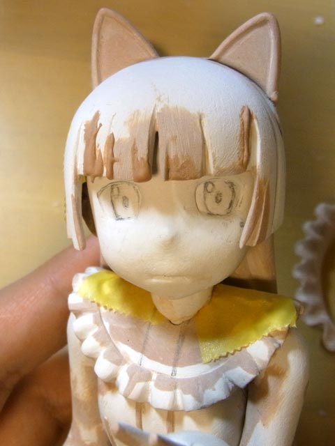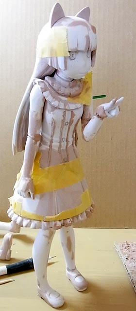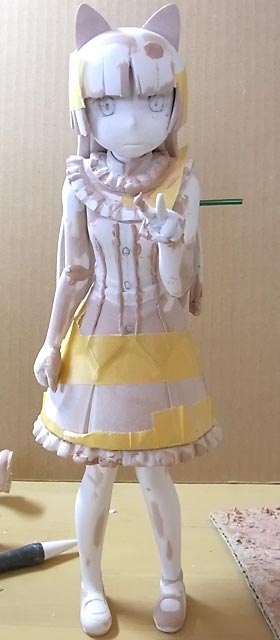 黒猫の両腕を再度詰めたり角度の調整をしたり。スカートのフリルは大体できました。