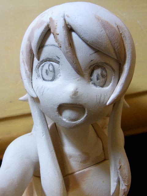 桐乃の髪は軸打ちの際にやや角度を変えたので、毛先が下を向くように修正中です。