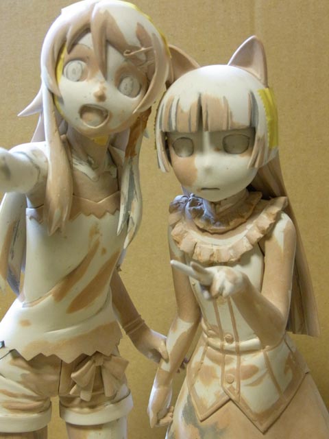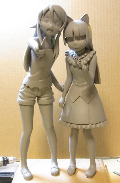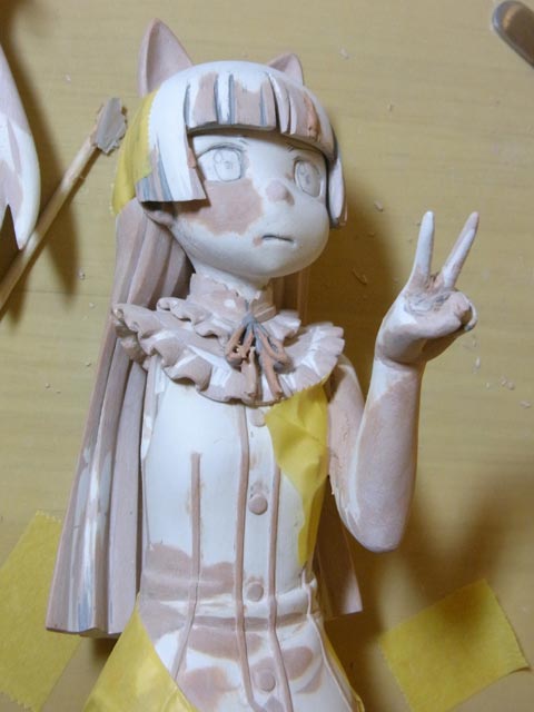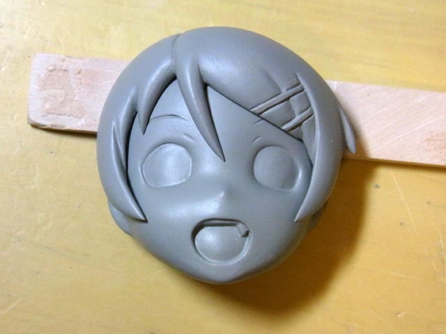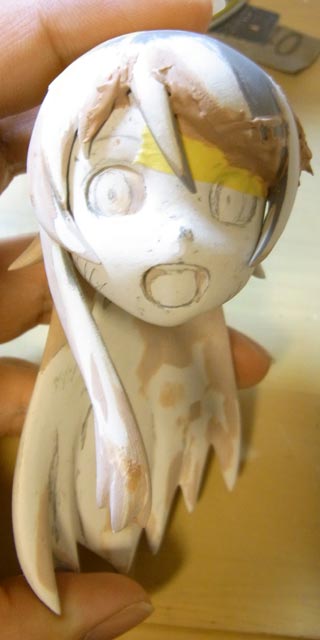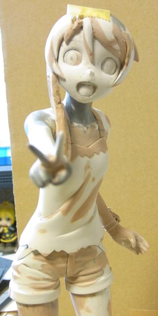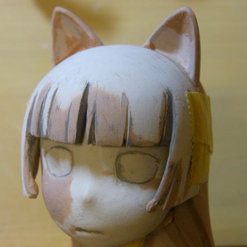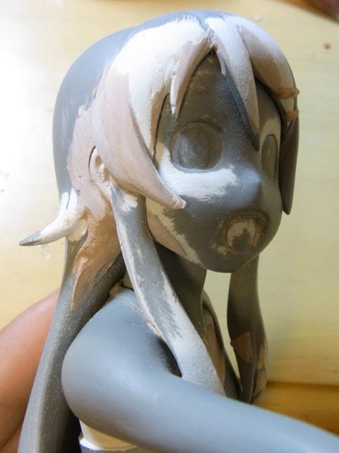 桐乃は前髪・頭・顔・首のパーツのすり合わせをしました。離型剤塗る為にサフ吹いたので顔色が悪いです(笑)