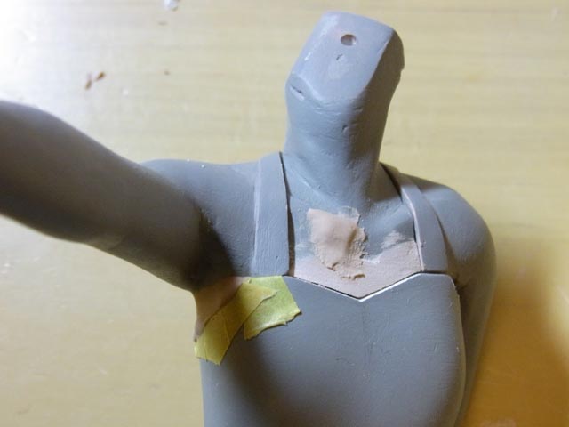 上着の裾が邪魔だったので一旦へし折って作り直しです。
