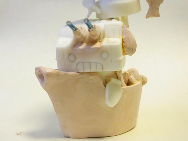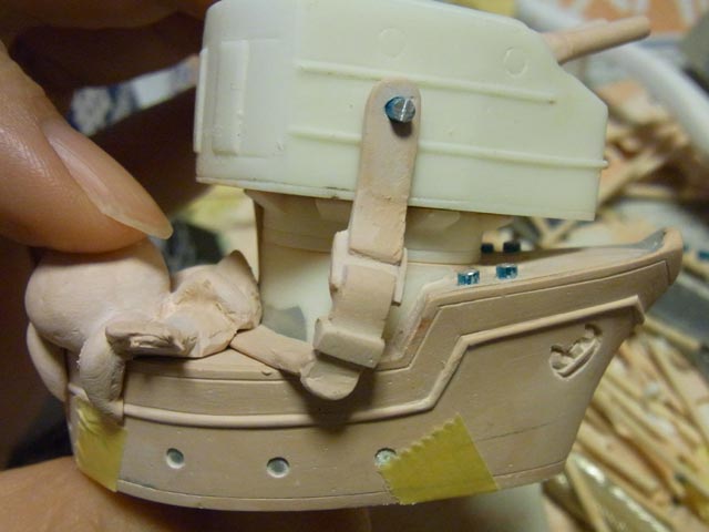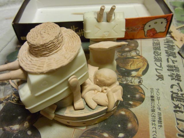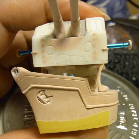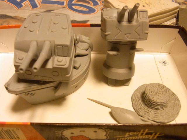連装砲くんは顔と錨とタコと側頭部のベルト?がまだです。あと舷窓も彫らんとなー。