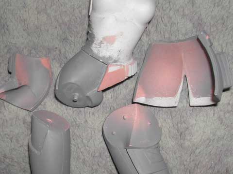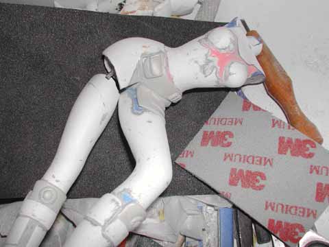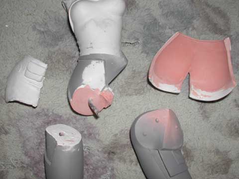 胴体と腕の寸詰。左膝の下も更に詰めた。