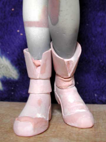 右腕を一旦ぶった切って調整。あとは両手を作り始めました。 平行してブーツの作りこみ中。資料に乏しくて形がよ〜わからん。