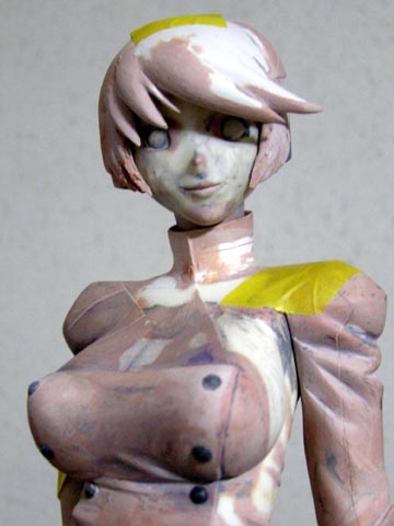 んで今度は前髪の形状修正。なるべく多くの角度で設定画に近い形になるように。 瞳の横の辺りの髪の形状がなかなかうまくいきません。そういうのが面白いところでもありますが、 何度も直してるとだんだん訳が分からなくなってきます(笑)