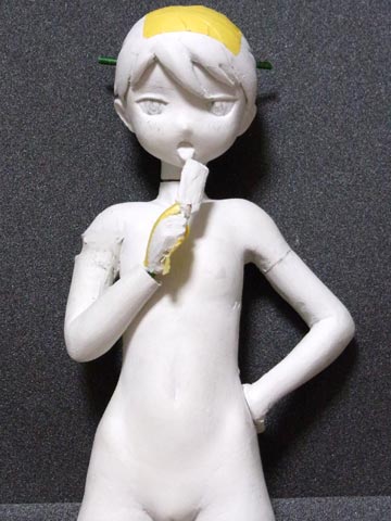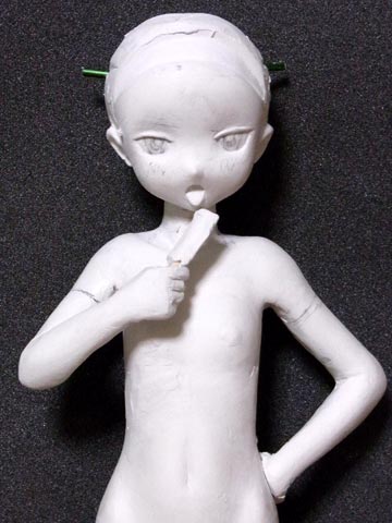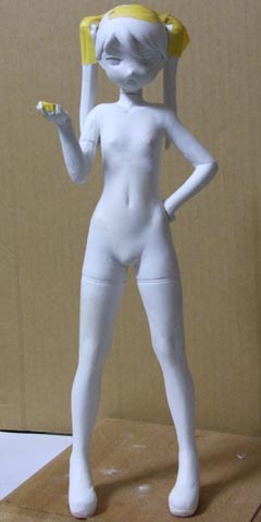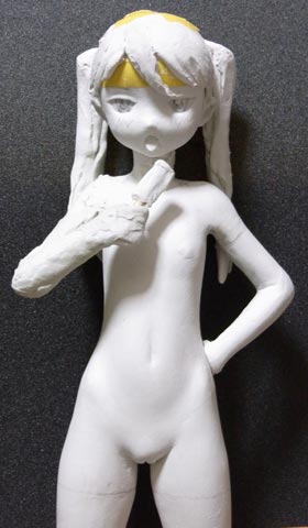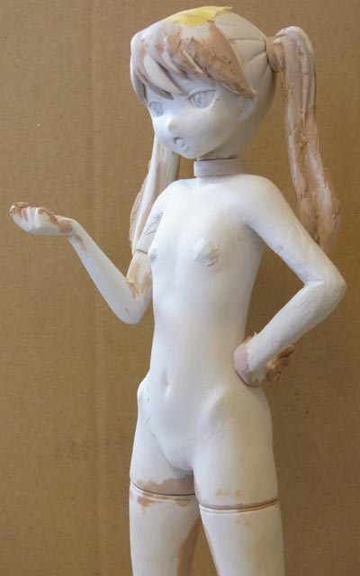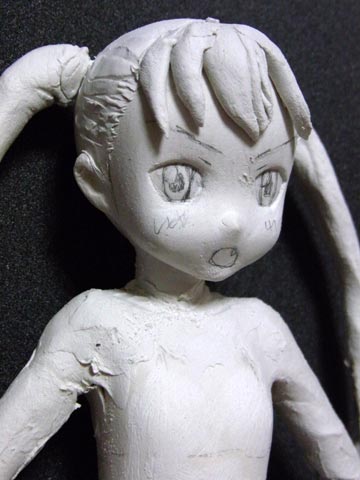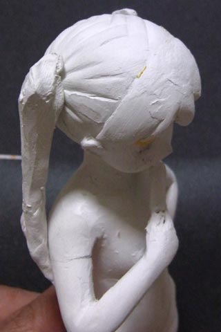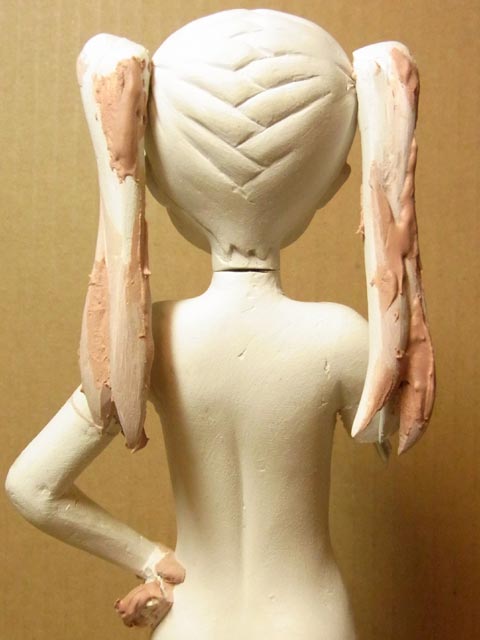 ツインテールを直し中。特に再現すべき形状がある訳ではないので気の向くままに盛り削り。
