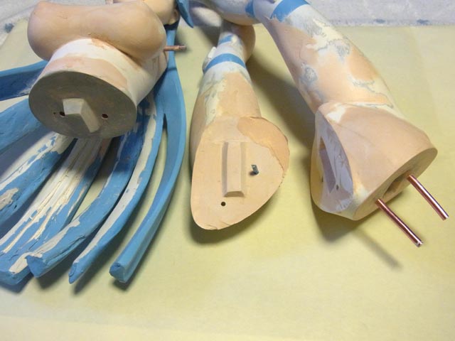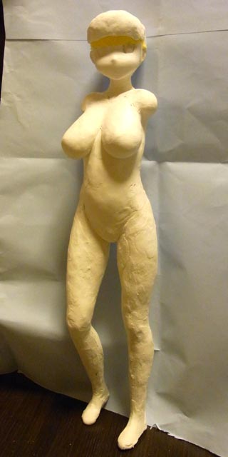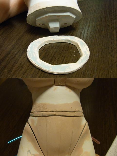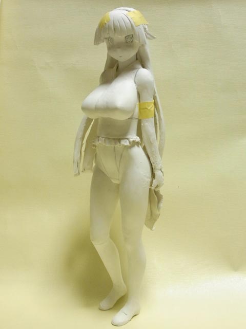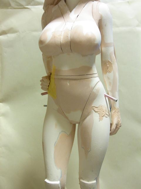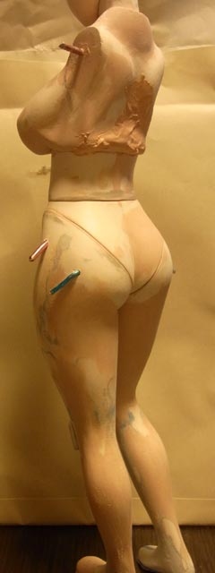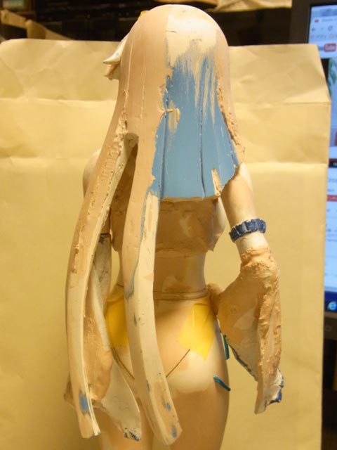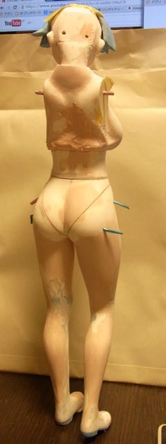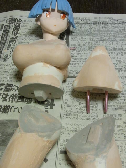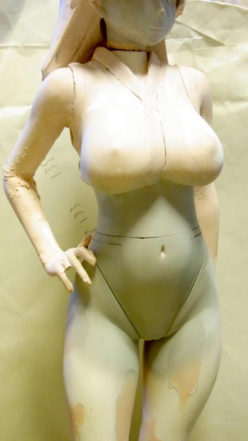 ポリパテ届いたので3年前の続きで足の整形。おっぱいの下が削りにくいので帯のラインで分割しました。