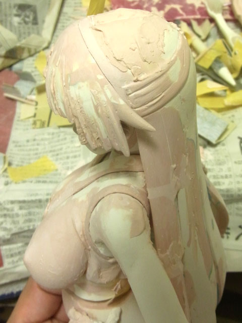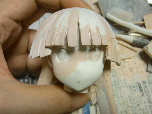 髪の毛改造中です。ファンドで全部作る方が結果的には早いかも〜と思いながらちびちびポリパテを盛り削りしております(笑)