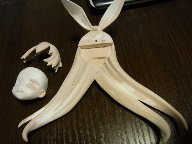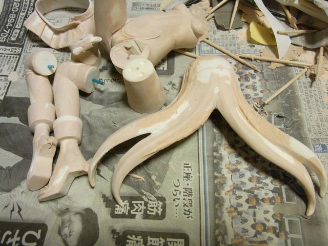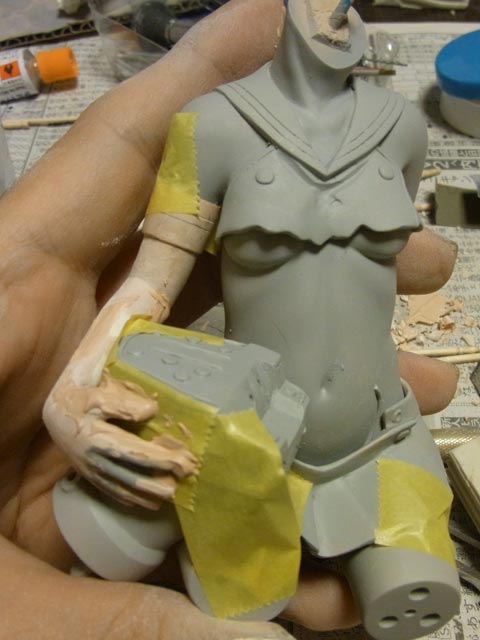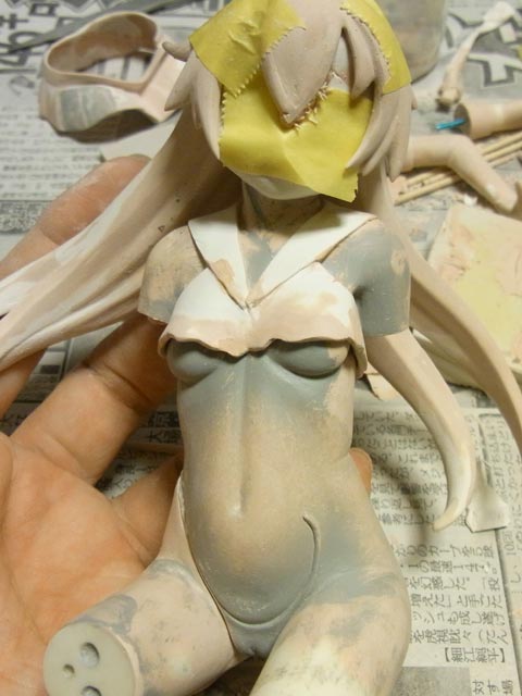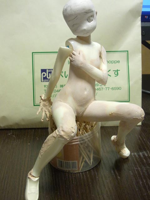 表面処理が終わった後で顔と右腕を直してます。腕は手が少し大きかったのと、上腕が長過ぎたので。