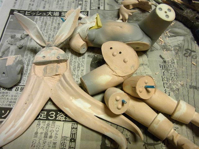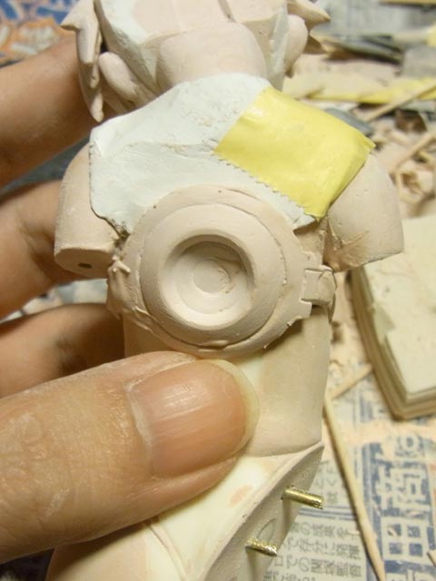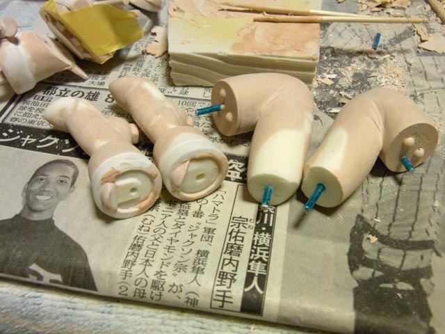 思うように盛り削りできない窮屈な状態で作業するよりは、あとでくっつけ直す方が楽です〜。
