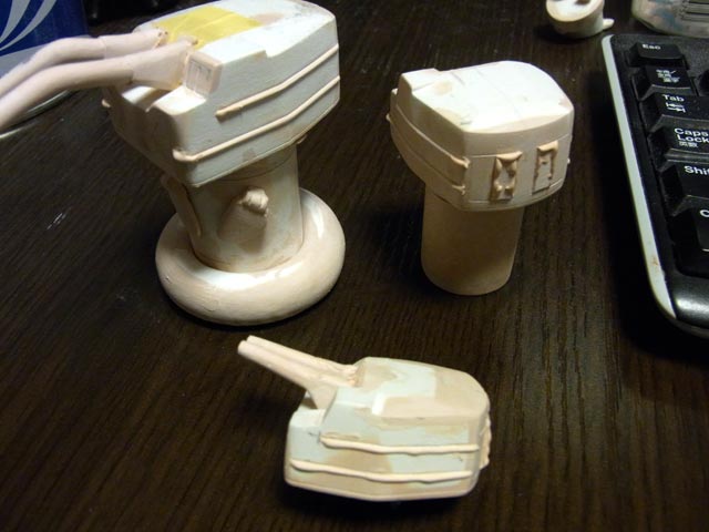 連装砲ちゃんの側面の出っ張りを作成中。後ろは絵がないので元になってる連装砲を参考にテキトーに作りました。 2つの四角は出入り口の扉ですかね。