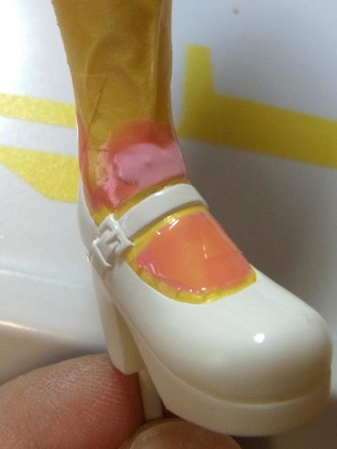 足首の皺の部分に2度塗りしてます。