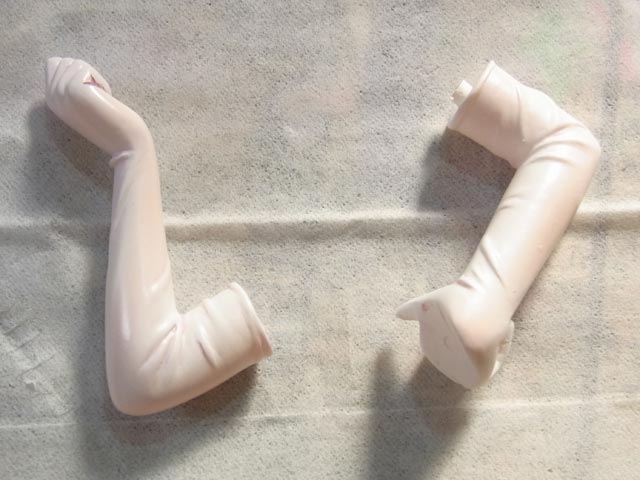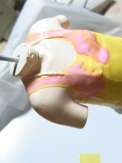 腕と脚は白く塗った後、部分的にクリアーで薄めた肌色を吹いて透けてる感じにしました。