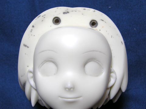 ダボを彫って、サフ吹いて、離型用にワックス塗って、ポリパテ盛って、前髪をぎゅっと押し付けると、
