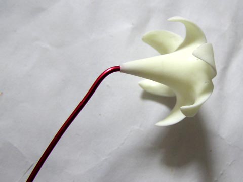 百合の花は塗装前に接着&継ぎ目消ししておきます。茎の部分はアルミ線などに替えてしまった方がいいと思います。