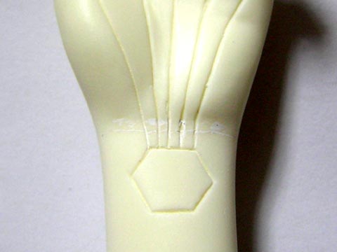 左手首には複製段階で原型に入ってしまったヒビの跡があるのでパテで埋めて下さい。