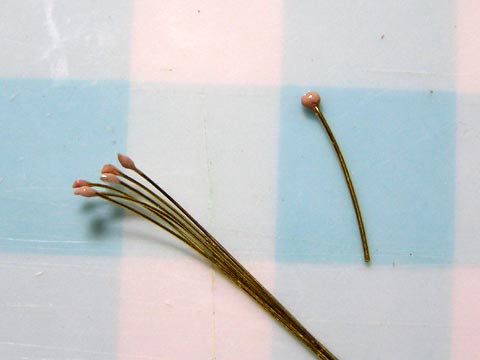 作例ではオシベを0.3mm、メシベを0.5mm真鍮線で作ってみました。