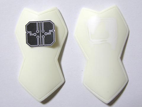 肩の板のセレブラムのマークはデカールで再現することにしたので、邪魔なスジ彫りを埋めちまいます。