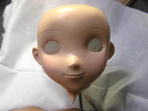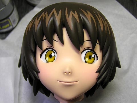 前髪や胴体と仮組みして目線の方向を確認しながら塗ってます。