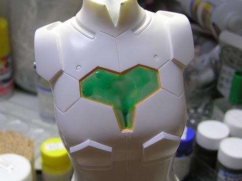 ホロスーツのあちこちにスジ彫りがあるので、墨入れするとかなり印象が良くなると思います。