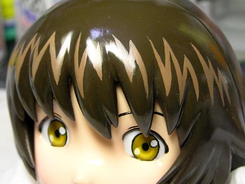 筆塗りの失敗&拭き取りに備えて、顔と前髪にもついでにクリアーを塗っときます。