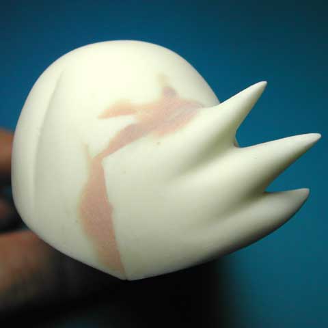 ハリセンは指の形に欠けていない方を先に入れて、回転させて指の部分に押し込む感じです。