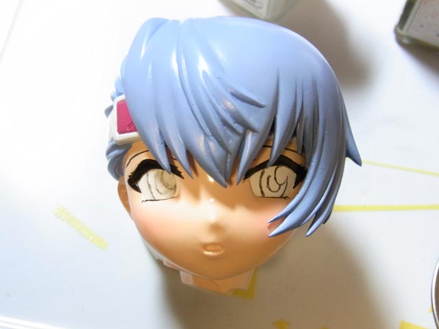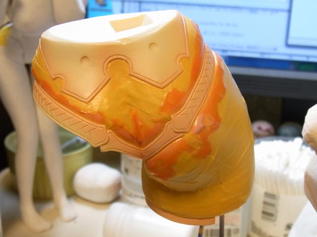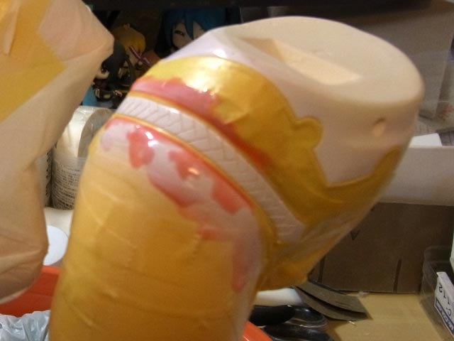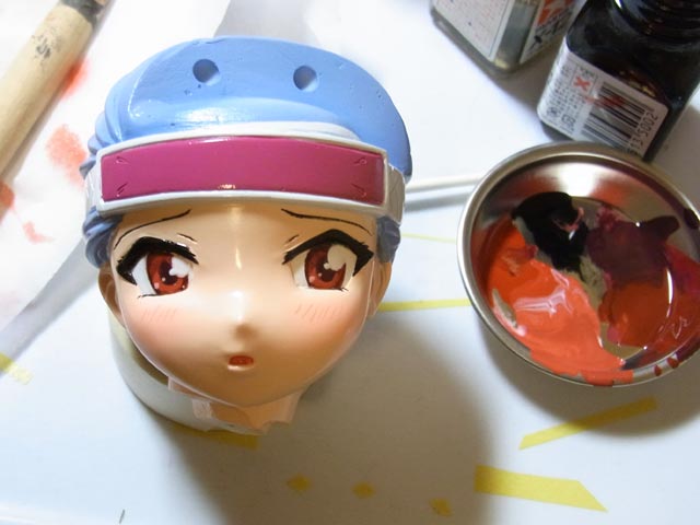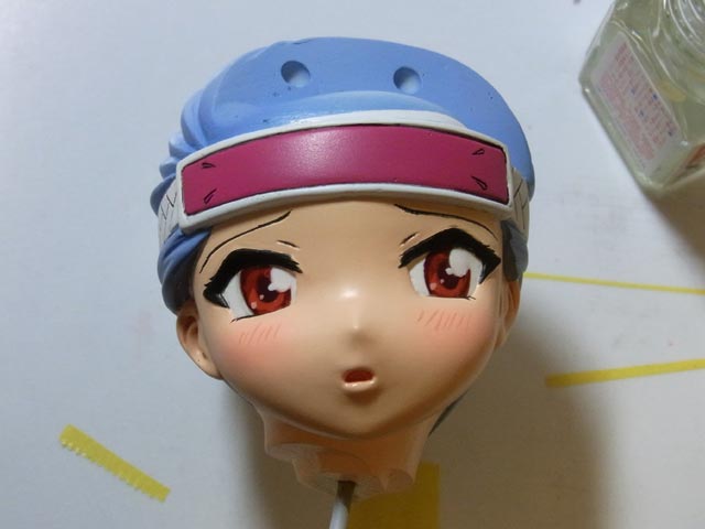 一方、首の方は塗り分けラインに細く切ったテープを貼って、隙間をゾルで埋めるという方法でマスキングしてます。