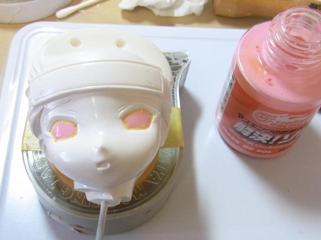 肌色マスキング→白→白マスキングという所。この後黒を吹きます。