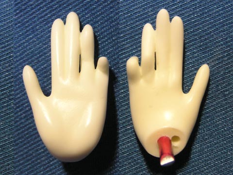 左手の中指と薬指の間はデザインナイフで削って隙間を復活させて下さい。