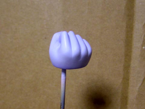 足の丸いトコの側面、胴体の背中の白い部分をマスキングして薄紫を吹きます。